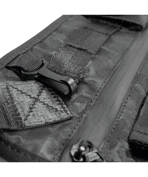 - The open-front velcro pouch is meant for your bulky items that you may need access to in a hurry, like perhaps your wallet or a pack of business cards.