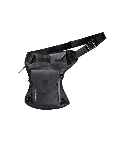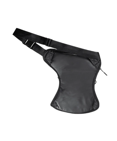 - Just take the larger waist strap and run it across your preferred shoulder and buckle it in. The thigh strap can be removed. We promise that you’ll look just as cool as you would with it around your waist!