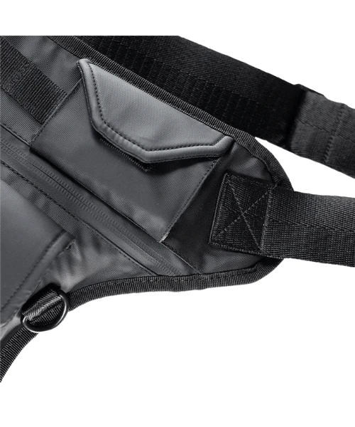 - The open-front velcro pouch is meant for your bulky items that you may need access to in a hurry, like perhaps your wallet or a pack of business cards.