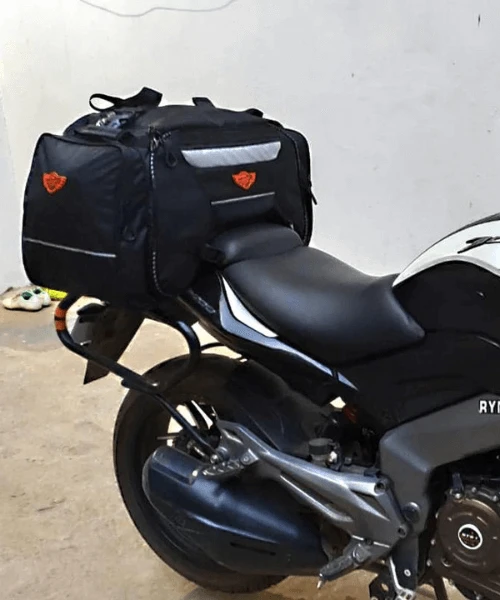 Rhino Mini Tail Bag comes with a capacity of 50 Ltrs and can carry all your stuff for a 10-15 days ride. Proudly Made in India with 1680D ballistic nylon high abrasion resistant fabric for longer durability and strength. Fits on any motorcycle on the pillion seat and also on the Top Rack. For mounting on the Top Rack, bungee cords maybe required for more stability, however if mounting on the pillion seat the straps given are sufficient. Two Side pockets and one Flap pocket for storing quick access items on the outside and one mesh pocket inside for toiletries and other stuff. Additional straps are provided for keeping any small bag on top of the Tail Bag. High visibility fabric used inside the bag for easy of access of items. Highly reflective 3M Scothlite tape for better safety and high visibility during night rides. One year warranty for any manufacturing defect.