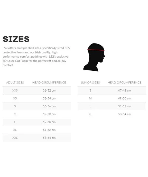 | SIZE | HEAD CIRCUMFERENCE (CM) |