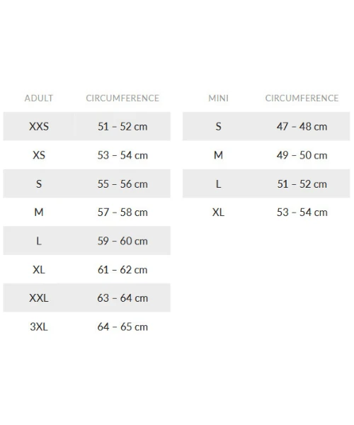 | ADULT SIZES | HEAD CIRCUMFERENCE |