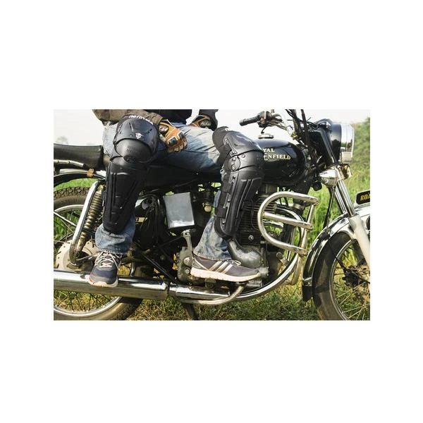 The multilayered construction is designed for motorcycle riders who want more coverage than conventional knee protectors. The three overlapped shells of semi-rigid and partially perforated polymeric material and black PE foam padding reduces the severity of injuries caused by impacts due to an accident. The three elastic straps with pin lock fastening system helps in keeping the bionic knee protector in place.
