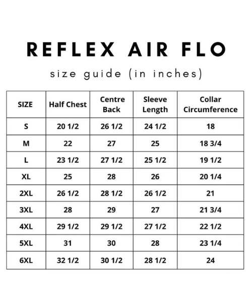 | Size | Half Chest | Centre Back | Sleeve Length | Collar Circumference |
