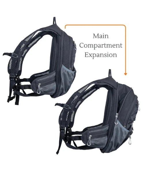 - Main compartment + Expandable Storage Compartment for Hydration Reservoir
