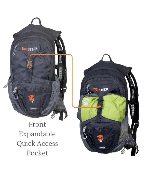 - The Stealth Hydration Backpack is designed for optimal storage and organization. Featuring an 8-litre capacity and expandable storage compartment, the backpack lets you carry a hydration reservoir and a lot more, with ease. This backpack is the perfect companion for any outdoor activity.