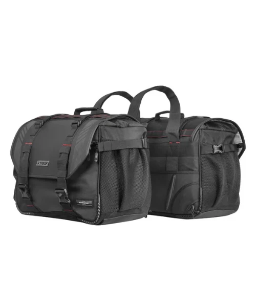 - The Optimus Saddlebags 60L – Stormproof are purpose-built for use on motorcycles with a horizontal silencer.