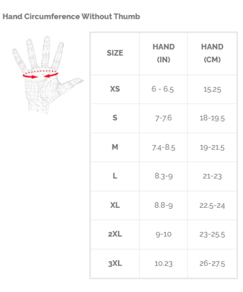 | Glove Size | Hand (Inches) | Hand(Cm) |