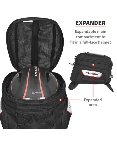 - Expandable main compartment to give you flexibility for when you need the extra space – big enough to fit a full-face helmetÂ