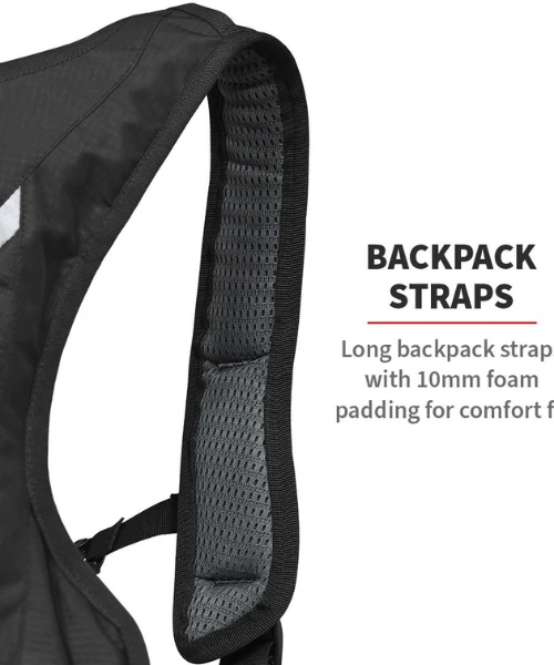 - Long backpack straps with 10mm foam padding for comfort fit
