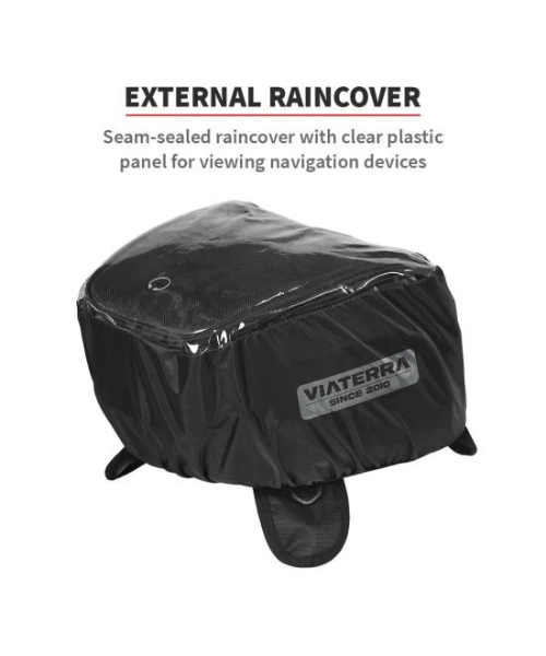 - 1 outside transparent pocket to keep the phone for GPS directions – works even with the raincover