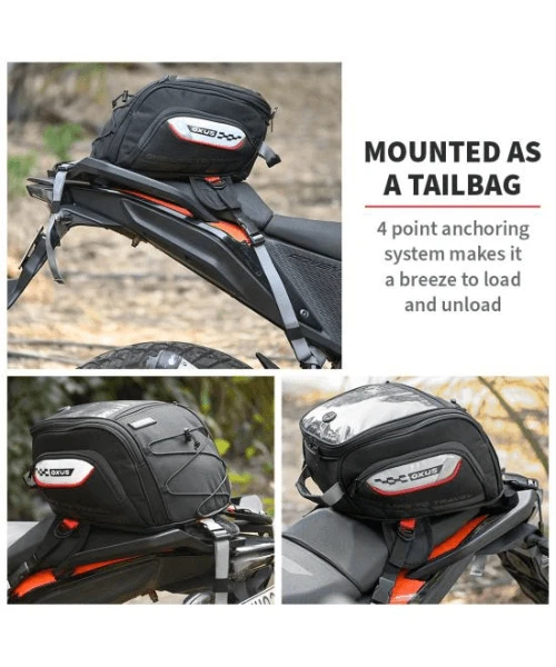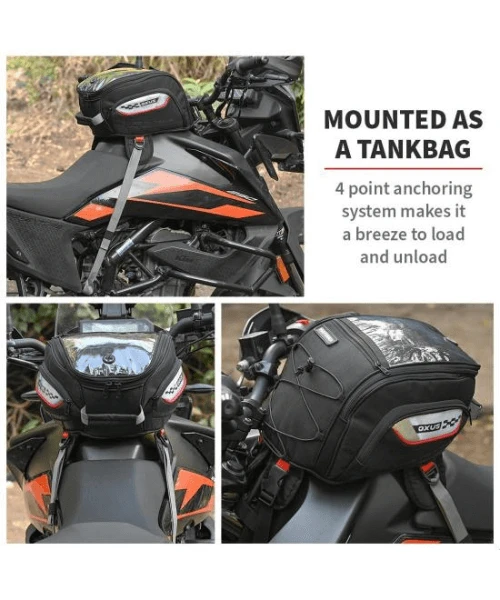 Product Description: Constructed from tough and durable fabric, the Oxus Universal tank bag is a functional, no-nonsense addition for everyday commutes and can also be used as a sling bag or a tailbag. The strap based system fits universally on all fuel tanks and comes with an external rain/dust cover. Oxus Universal tank bag’s buckle-based mounting system makes it super easy to mount/unmount – very convenient for petrol refills during everyday commutes.