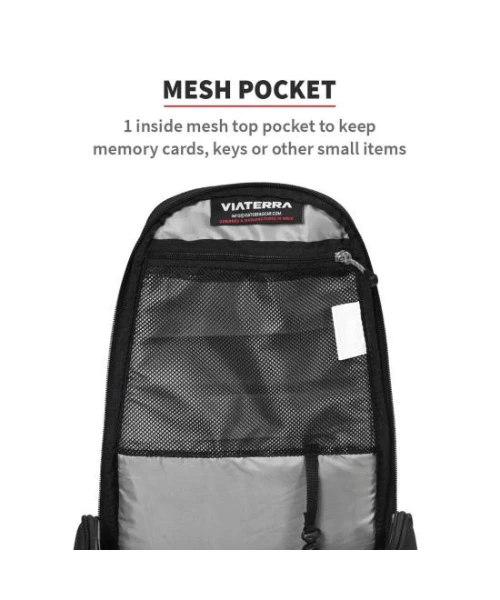 - 1 inside mesh top pocket to keep bike papers, documents, memory cards, keys, or other small items