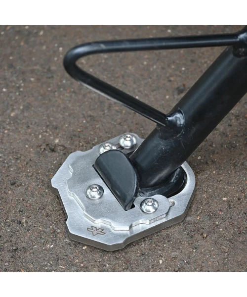 - The unique design of our sidestand shoe includes a cavity on the bottom plate that ensures the bike is lifted only 2mm off the ground.