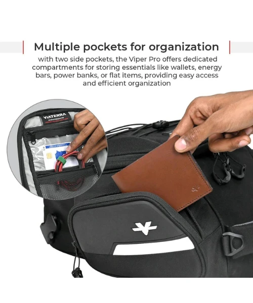 Multiple pockets for organization: With two side pockets, the Viper Pro offers dedicated compartments for storing essentials like wallets, energy bars, power banks, or flat items, providing easy access and efficient organization.