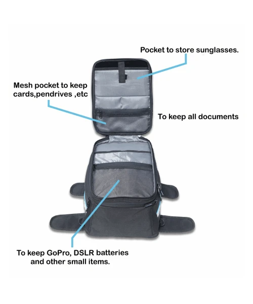 - The USP of our Tank bag is we are providing extra magnets and an extra flap for those motorcycles which has bit different tank than regular motorcycles and for extra sturdiness for those bikers who loves off roading.