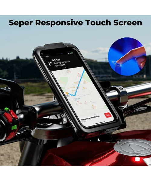 - Keep your phone safe and secure while on the road with our Fully Waterproof Bike-Motorcycle-Scooter-Cycle Mobile Phone Holder Mount.
